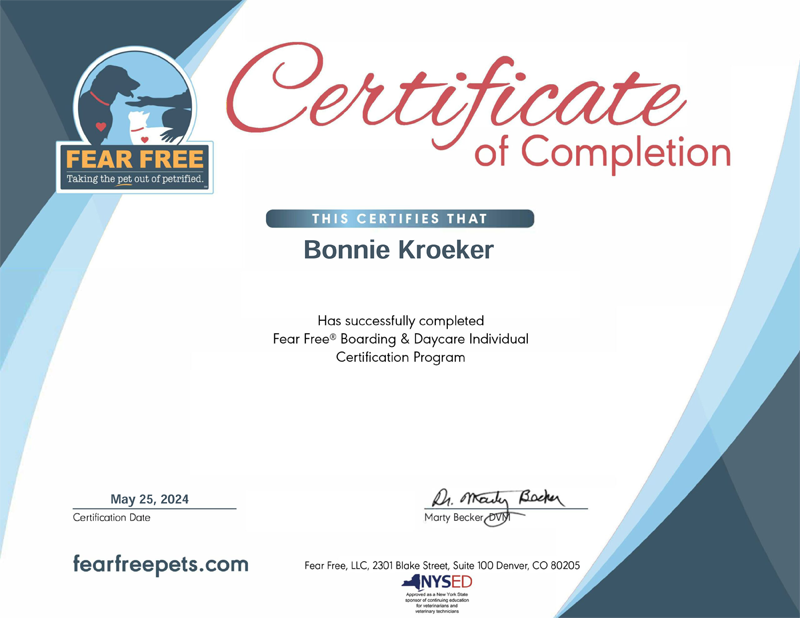 - Fear Free Boarding & Daycare Certification Program: May 2024