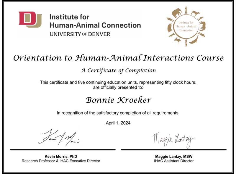 - University of Denver, Institute for Human Animal Connection > Orientation to Human Animal Interactions: March 2024